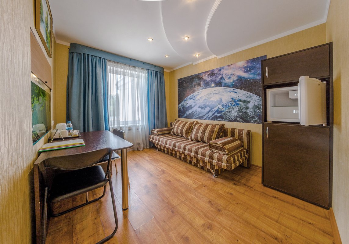 Удобное расположение, близко к центру и знаковым объектам. В номере чисто, уютно. Есть чайник, чашки, холодильник. Бутыль с водой в коридоре. Территория на вид непримечательная, но там тихо. Въезд на территорию охраняется. Можно с вечера заказать завтрак за отдельную плату. Столовая на том же этаже, где и номера. Всё рядом.